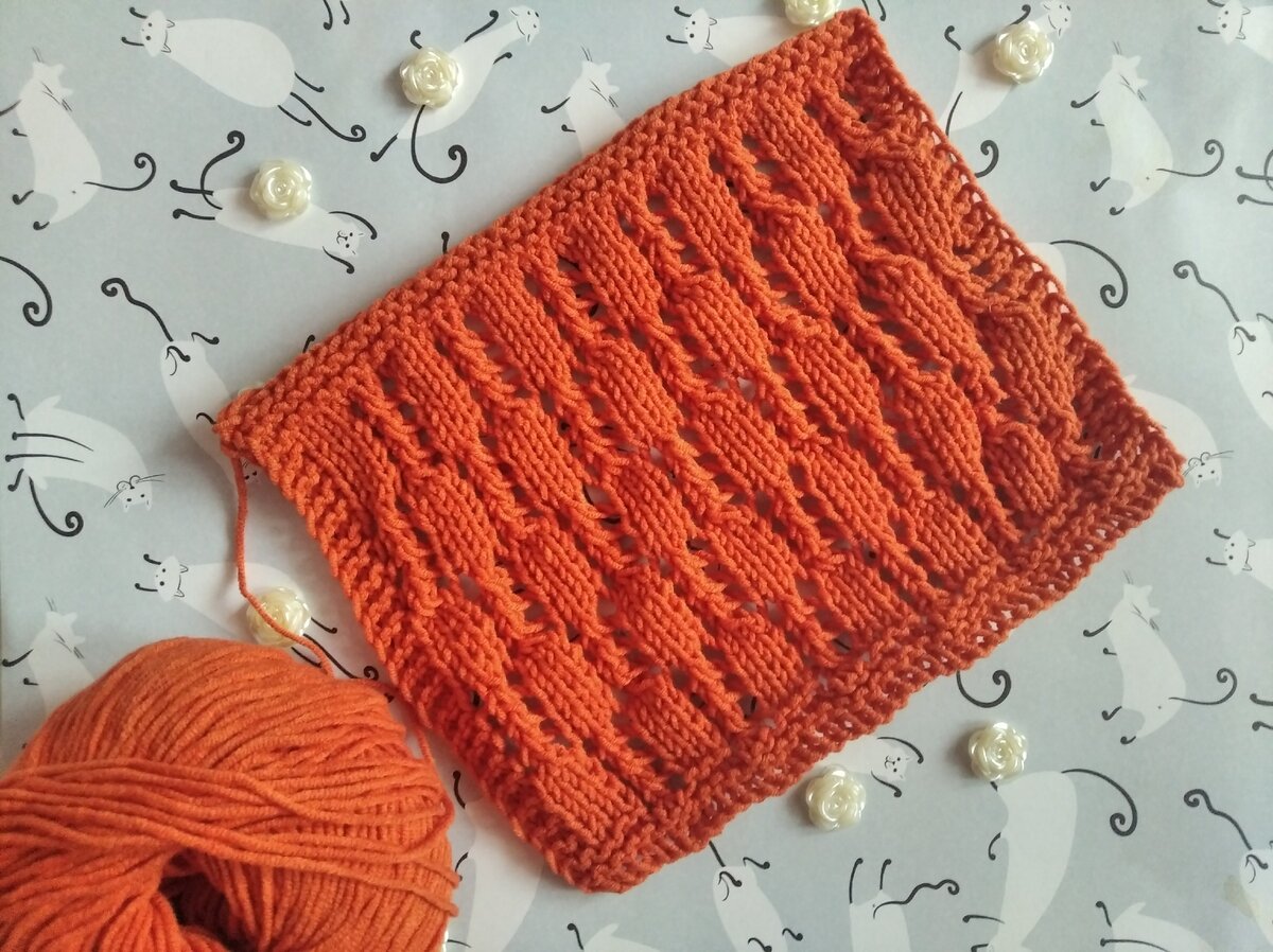 Простой ажурный узор дорожек. Раппорт узора кратен всего 3 петлям.