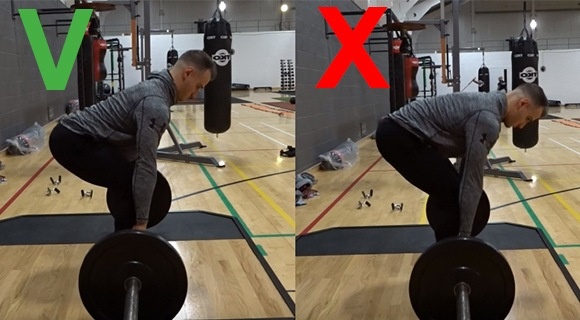Спина должна быть ровная, никаких округлений быть не должно, в противном случае будет травма.