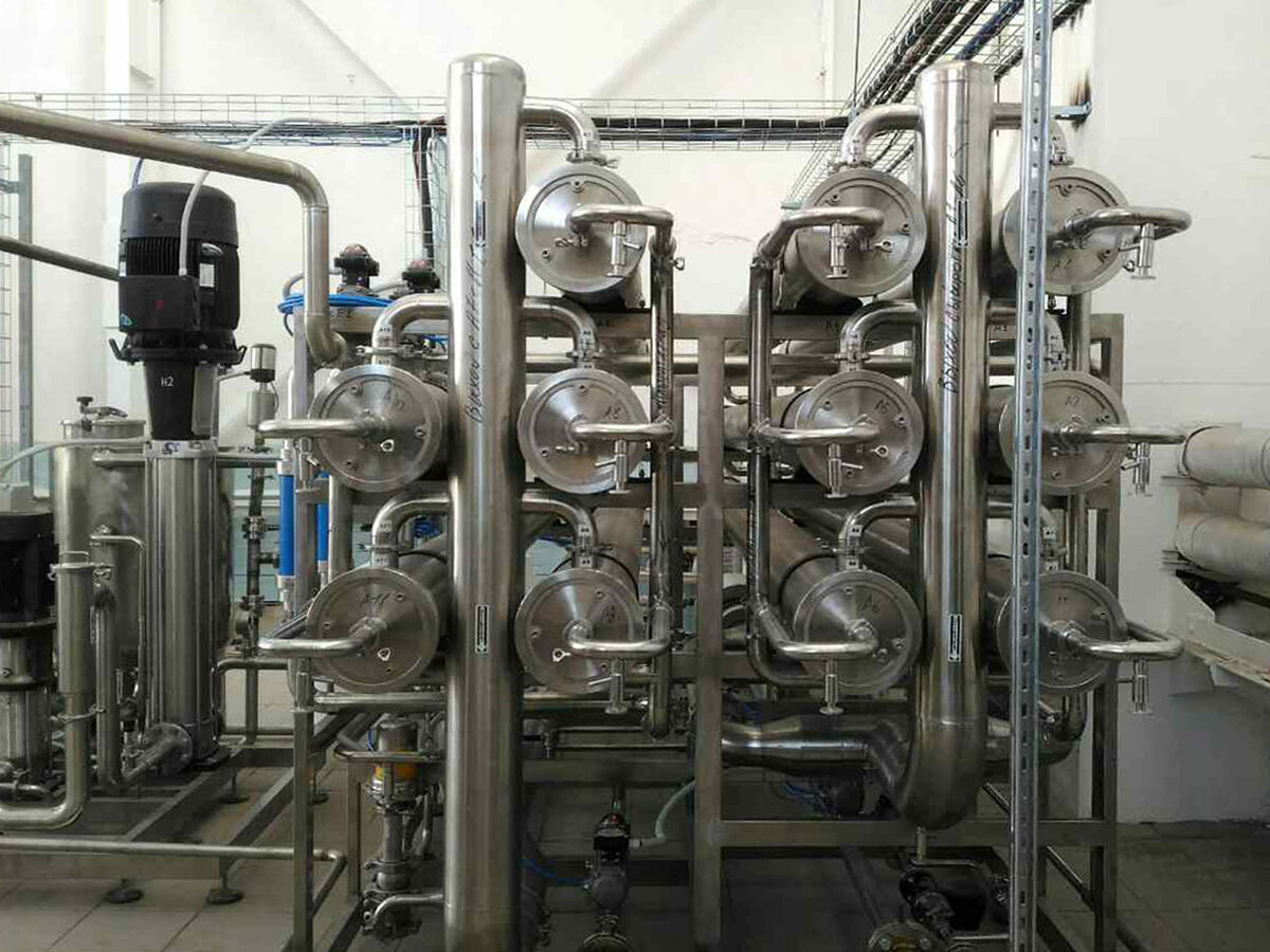 В комплекте с мембранной нанофильтрационной установкой смонтирована обратноосмотическая установка производительностью 10 м3/час для проведения мойки, дезинфекции оборудования и трубопроводов. Качество фильтрата обратноосмотической установки обеспечивается электропроводностью фильтрата ≤ 15 мкСм/см.