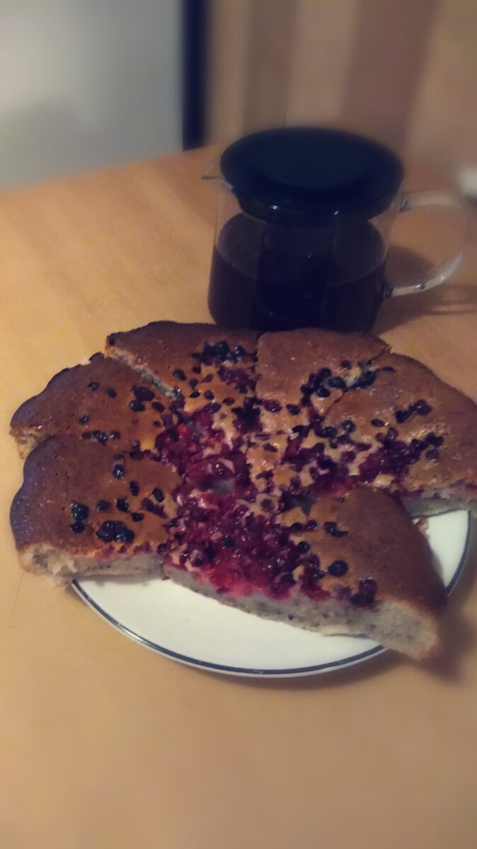 Идеально с вишней (разумеется без косточки) Если косточку вынимали сами, дайте соку стечь). Если с вишней для вас сложно, замените ягоды на бруснику или клюкву. Тоже вполне благородно получается.
