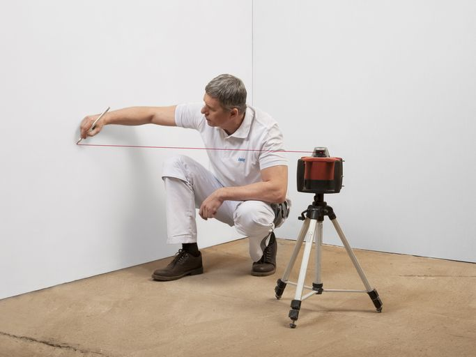 Сухая сборная стяжка КНАУФ-суперпол представляет собой комплект специально подобранных материалов, необходимых для устройства ровного и качественного пола, а также для придания ему тепло- и звукоизоляционных свойств. Конструкция КНАУФ-суперпола состоит из элементов пола (ЭП) и специальной сухой керамзитовой засыпки КНАУФ. КНАУФ-суперпол — идеальное решение для устройства качественного пола как в частных малоэтажных домах и коттеджах, так и в многоэтажных жилых и офисных зданиях взамен устаревающих традиционных цементно-песчаных стяжек. При монтаже сухого сборного пола КНАУФ в помещениях с повышенной влажностью (например, в ванной комнате) поверхность готовой стяжки необходимо защитить от влаги. Для этого используется обмазочная гидроизоляция КНАУФ-Флэхендихт и гидроизоляционная лента КНАУФ-Флэхендихтбанд. Шаг 1. Определение толщины стяжки С помощью лазерного или «обычного» уровня определить требуемую толщину стяжки. Шаг 2. Укладка разделительного слоя По бетонному основанию выполнить у