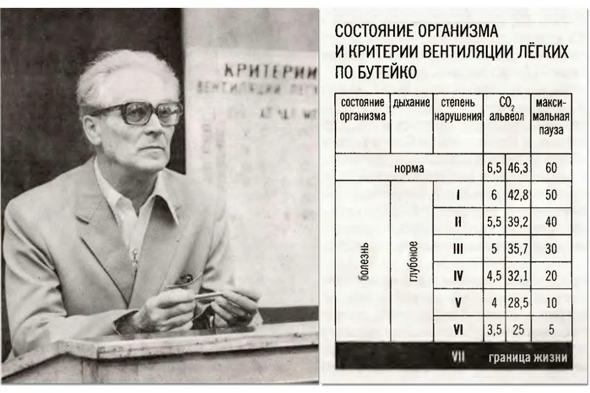 Константин Павлович Бутейко родился в 1923 году. В 1942‑м талантливый и амбициозный молодой человек начал учебу в медицинском университете им. И. М. Сеченова в Москве. На выпускном курсе все мечты Константина зачеркнул страшный диагноз — злокачественная форма гипертонической болезни. Врачи были уверены, что он проживет лишь несколько лет. Но Бутейко решил бороться. Он начал изучать древние