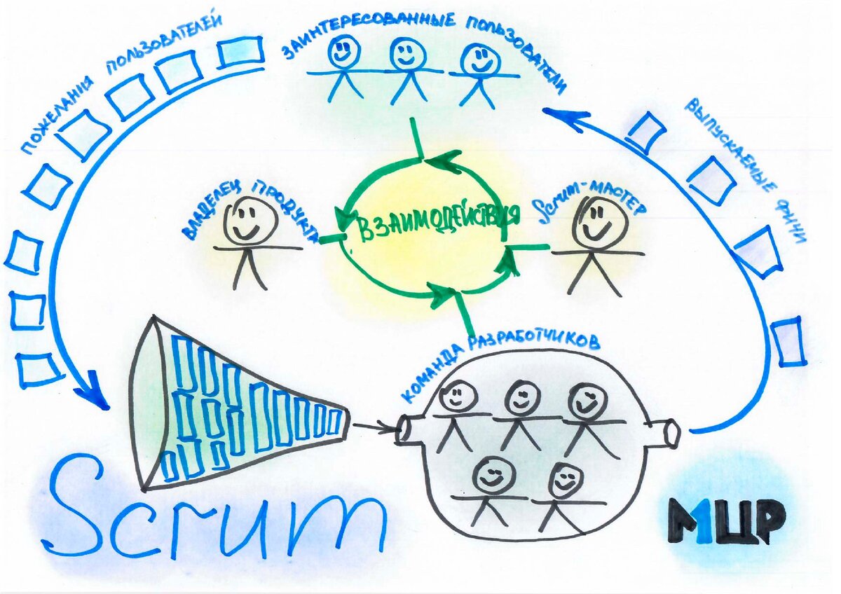 В работе используем методологию Scrum — вид Agile разработки. Чтобы понять, как устроен процесс, познакомьтесь с действующими лицами.