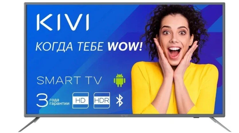 коаксиальный (SPDIF). Беспроводное подключение - Wi-Fi, Bluetooth. Для просмотра тв предусмотрен универсальный DVB-T2/C/DVB-S2 тюнер. Из стандартных функций реализованы: телетекст, таймер сна, родительский контроль, TimeShift и другие. Качество изображения, углы обзора оценены пользователями яндекс маркета на 4,8 балла. Звук - 2 динамика по 8 Вт с поддержкой Dolby Digital - на 4,6. Звук неплох, но меломанам придётся потратиться на внешнюю акустику. Дизайн непримечательный, выделяется лишь металлическая вставка с названием бренда на нижней рамке. Установка на ножки или крепление VESA 200*200. Цена 11 000 рублей.