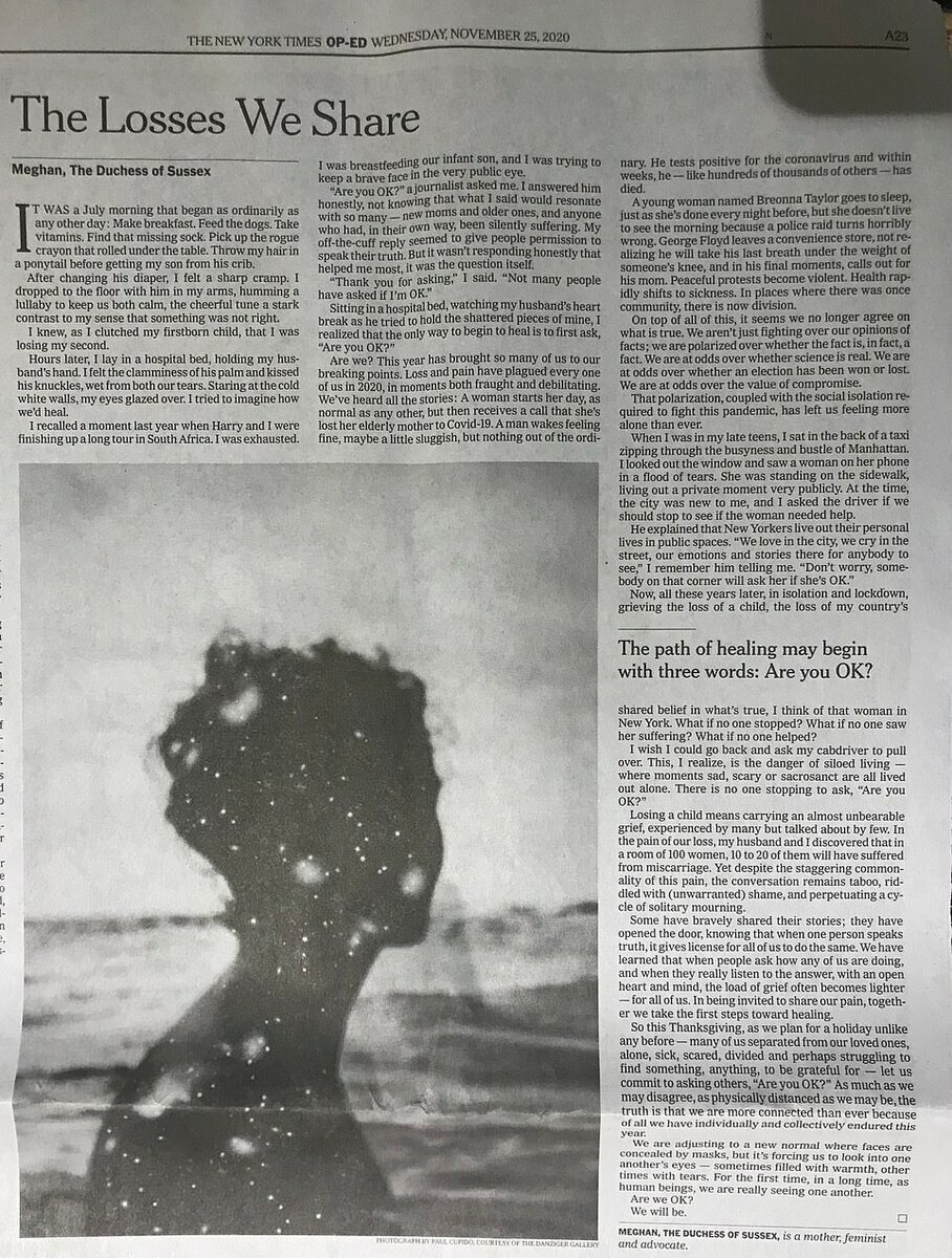 Статью Меган Маркл в газете New York Times продолжают обсуждать, ее поступком продолжают восхищаться.