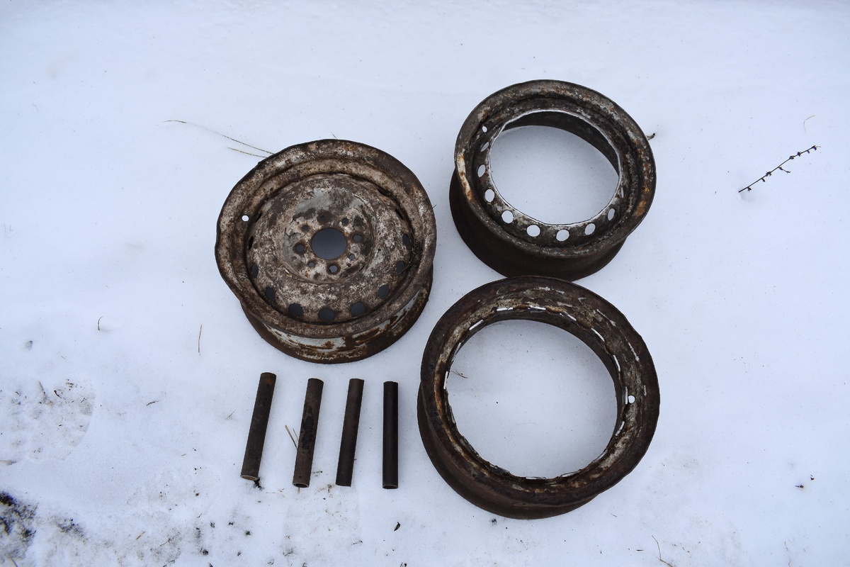 Три диска ,размером на 13. ножки из трубок, В дисках сделал вырезы балгаркой.