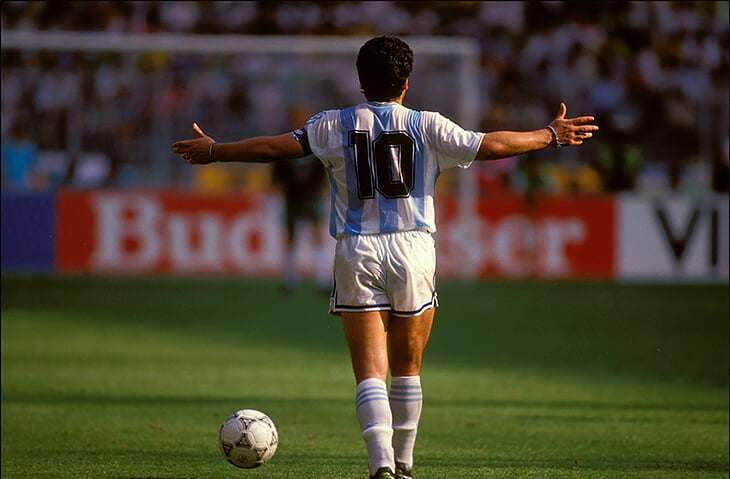 Марадона выступал за клубы «Архентинос Хуниорс», «Бока Хуниорс», «Барселона», «Наполи», «Севилья» и «Ньюэллс Олд Бойз». Он провёл 91 матч и забил 34 мяча в составе сборной Аргентины, вместе с которой выиграл чемпионат мира 1986 года.