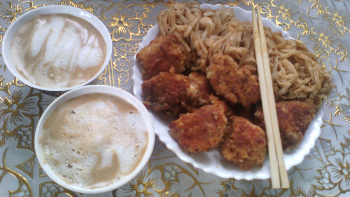 Мясцо выкладываем в тарелку, а вместо него отправляем обжариваться лапшу. На неё не жалеем вливаем соус Терияки, Якитори, кисло-сладкий - не суть важна, можно и обычный соевый.