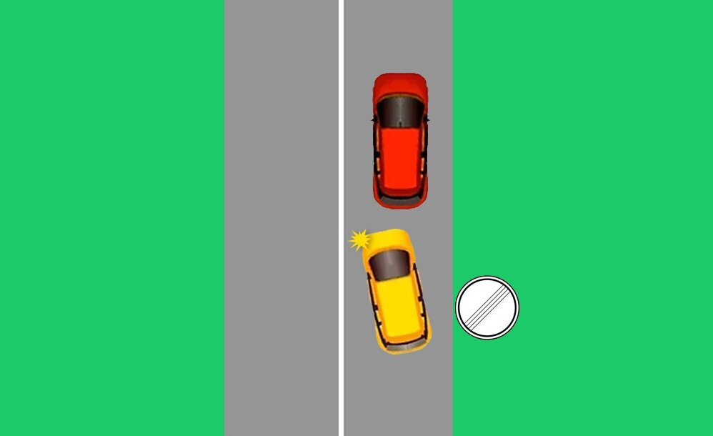 Разберем задачку по теме обгона. Желтый седан едет по двухполосной дороге впереди него движется красный автомобиль с меньшей скоростью. Мысль в голове у водителя желтого автомобиля "Обогнать бы данную машину, но сплошная, вдруг сотрудники и штраф"