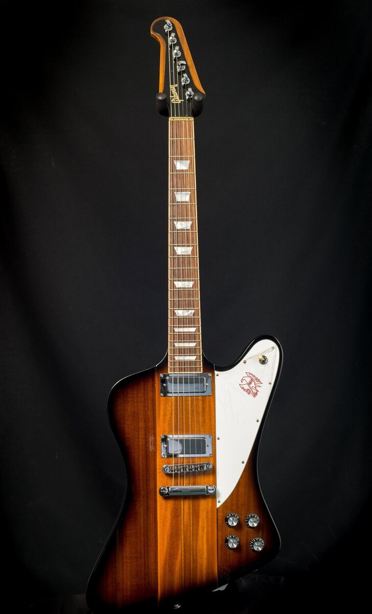 Колки оказались очень хороши, с высоким передаточным числом. На ЛП и Страте при замене струн пользовался специальной пластмассовой крутилкой, здесь она оказалась не нужна. Также колки хорошо держат строй при работе с машинкой (о которой чуть позже). Да, гитару с такими колками не положишь на пол например, но то же самое могу сказать про ЛП. СтоИт Птичка тоже не ахти - надо прислонять к углу. Потому предпочтительно ее класть в кофр или вешать на стену на крепеж. Перевес грифа есть но на широком и не скользком ремне она висит довольно спокойно, Тяжелее привыкнуть к большой башке грифа при перемещениях, чувствуешь себя басистом в посудной лавке. По эргономике еще непривычно то, что если правая рука на прежних гитарах располагалась где-то в районе бриджевого датчика то здесь она за счет формы и точек подвеса гитары на ремне оказалась точно между датчиками. Собственно неудобств это не вызывает, быстро привык. А вот керамика у меня вызывала большие опасения, т.к. я хотел именно южанский блюзовый саунд, а старые птицы комплектовались алнико датчиками. Я даже предварительно поинтересовался какие фирмы производят реплики винтажных минихамбов к Фаерберду. Но опасения были напрасны - я никогда до этого не встречал керамику, которая была бы настолько сочной на чистом канале, как нековый датчик у Птички. Он просто бесподобен! Бридж более резковат, но легко подравнивается тембром до нужного сочетания.Кстати чтобы датчики выровнять по уровню сигнала бриджевый датчик приходится поднимать почти под струны, когда нек слегка притоплен. Вообще это уникальный инструмент, сочетающий характерный "фамильный" звук Gibson со стреляющей атакой Страта. В некоторых соляках трудно отличить от Страта, где-то можно врезать ДиСи не хуже SG, где-то похож на ЛП. НО!!! Все же это инструмент имеющий свой неповторимый звук, характер и шарм!