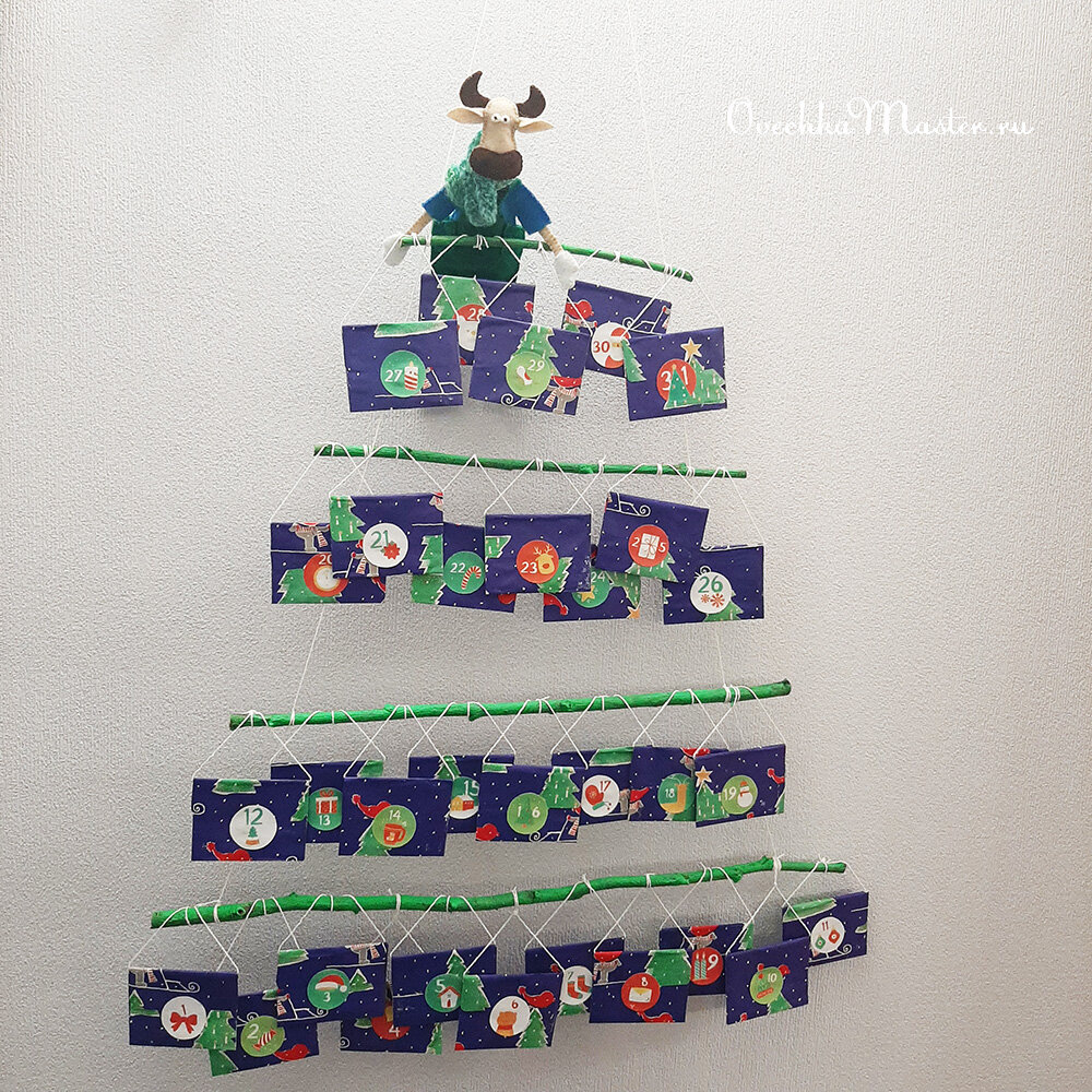 Добрый день. Продолжаю тему адвент-календарей и это уже третья статья из этой серии. Для тех, кто пропустил предыдущий пост, в котором я показывала, как сделала по-быстрому календарь из того, что было в наличии, дублирую еще раз здесь. Вот что у меня получилось!
