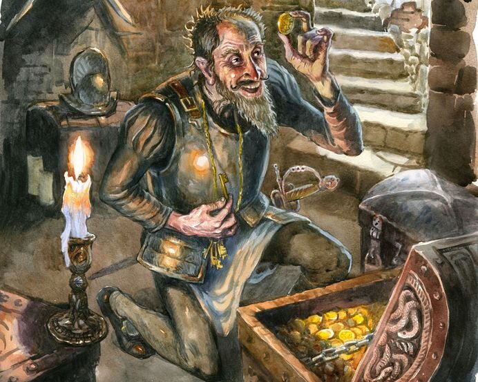 Подвал. Барон рассматривает свои сокровища и говорит: