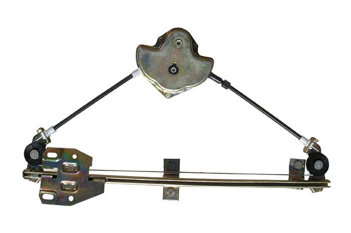 - Тросовые, 1 направляющая (англ. Single Rail) – это механизм, включающий в себя трос, который туго натянут между 3 роликами, и крепежные места на подрамнике. Как только начинает вращаться приводной барабан, также тросу задается направления движение, а уже трос двигает стекло. То очень простая, дешевая конструкция. Ее недостаток в том, что она не справится с тяжелыми стеклами. Обычно тросовые стеклоподъемники, оборудованные только одной направляющей, устанавливаются в задних дверях;