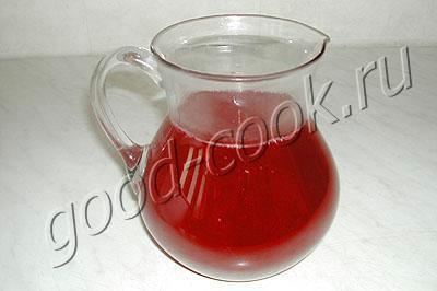 Выжимки вновь выложить в миску; если остались неразмятые ягоды, хорошенько размять. Залить еще одним стаканом воды, перемешать и снова отжать.