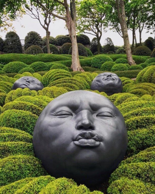 Посреди самшита расположились огромные головы из каучука. Их сделал испанский скульптор Самуэль Сальседо.