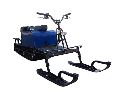 Производитель в технической документации заверяет, что эту модель можно считать тягачом, что несколько идет вразрез с ее внешним видом. Тем не менее, здесь есть багажные секции с внушительным объемом и сани, которые идут в комплекте с самой техникой. Грузоподъемность буксировщика составляет 200 кг, а платформа способна выдержать лишь 40 кг максимум. По желанию водителя лыжный модуль можно прикрепить как спереди, так и сзади. Есть цепная передача, также имеется звездочка, оснащенная механизмом самоочистки. Открытая подвеска выполнена по типу катка, но техника способна ехать и по снегу (это возможно благодаря гусеницам). Главное преимущество – стоимость. Мотобуксировщик относится к разряду бюджетных, что порой становится решающим фактором при выборе у многих людей.