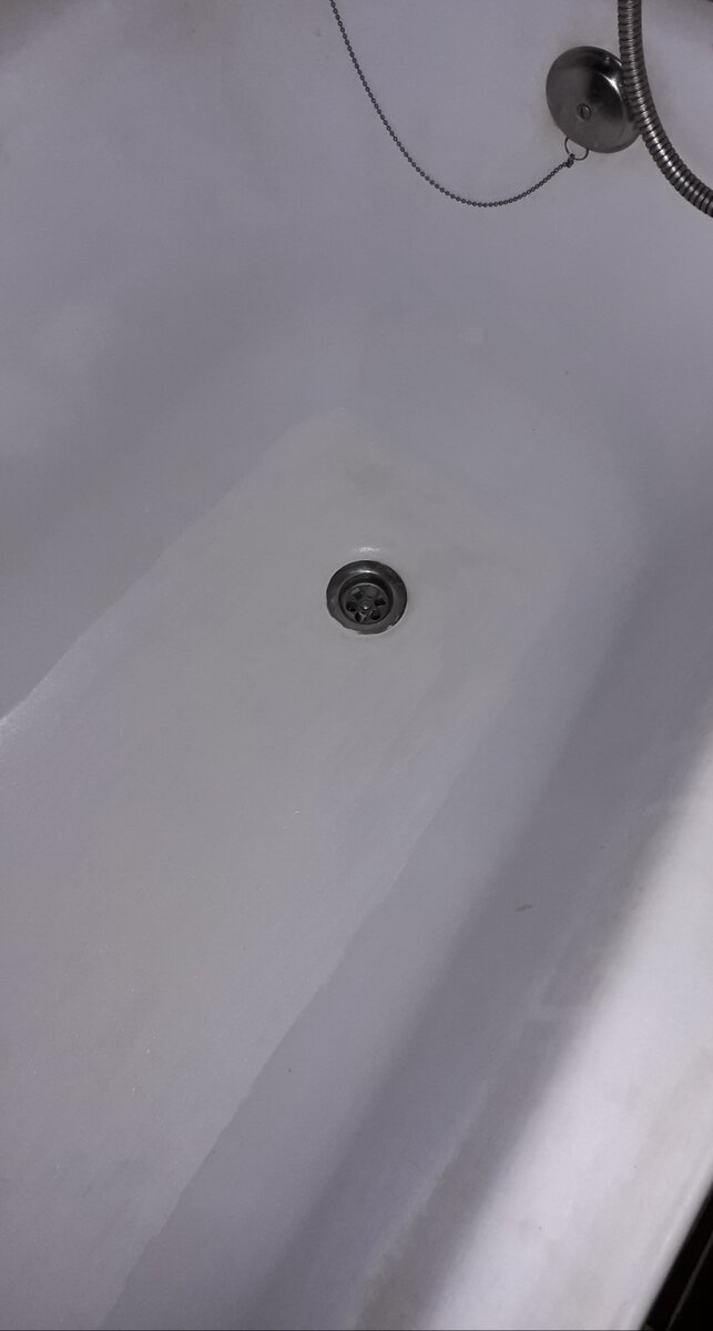 Эмаль в некоторых местах незначительно откололась и я подумала, что вполне смогу покрасить нужной краской эти несколько мест. Обмакнула кисточку в краску и дотронулась до повреждённого места. Скол сразу же успешно исчез, но капля краски выглядела как заплатка. Я увеличивала площадь покраски все больше и больше, покрасила все дно ванны, но красоты так и появилось.