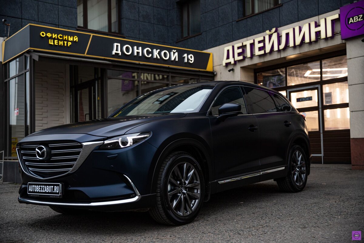 Сегодня мы покажем кроссовер японского бренда Mazda CX-9. Лакокрасочное покрытие автомобиля наши оклейщики защитили матовым антигравийным полиуретаном, а все хромированные элементы глянцевым полиуретаном. Посмотрите, как теперь смотрится этот SUV.