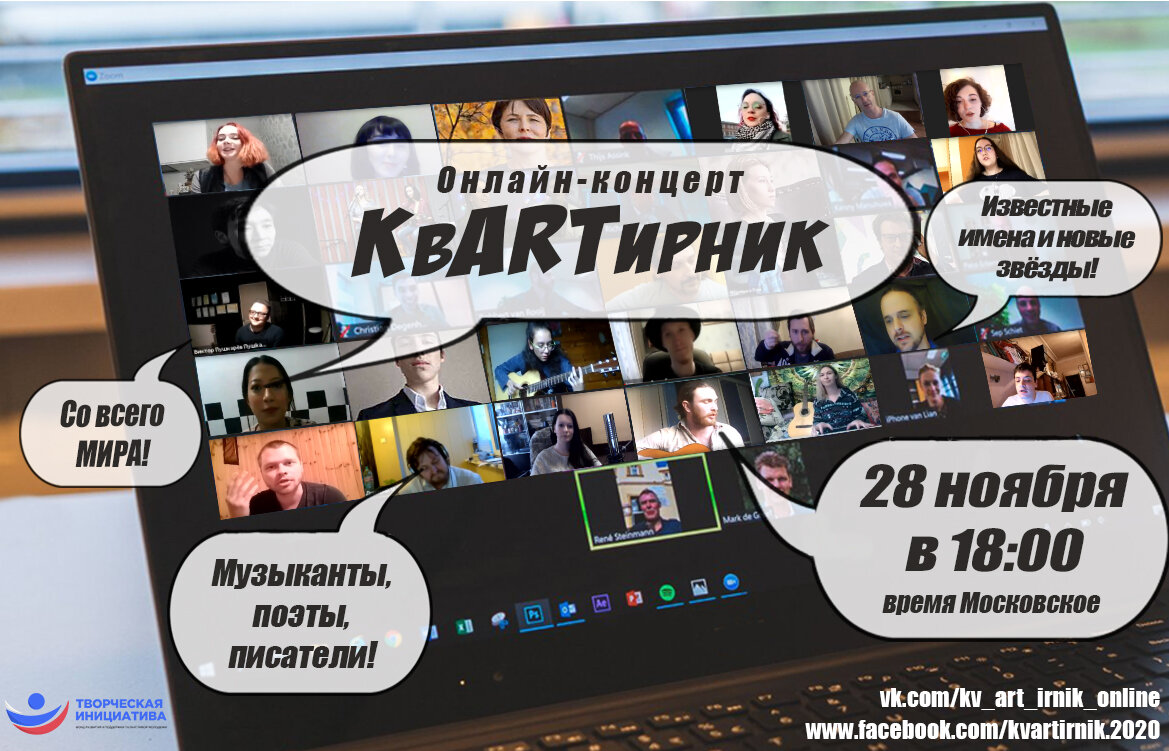 Вы смотрите прямую трансляцию онлайн концерта (КвАРТирник) , от 28 ноября 2020 года , при участии фонда развития и поддержки талантливой молодежи ТВОРЧЕСКАЯ ИНИЦИАТИВА.