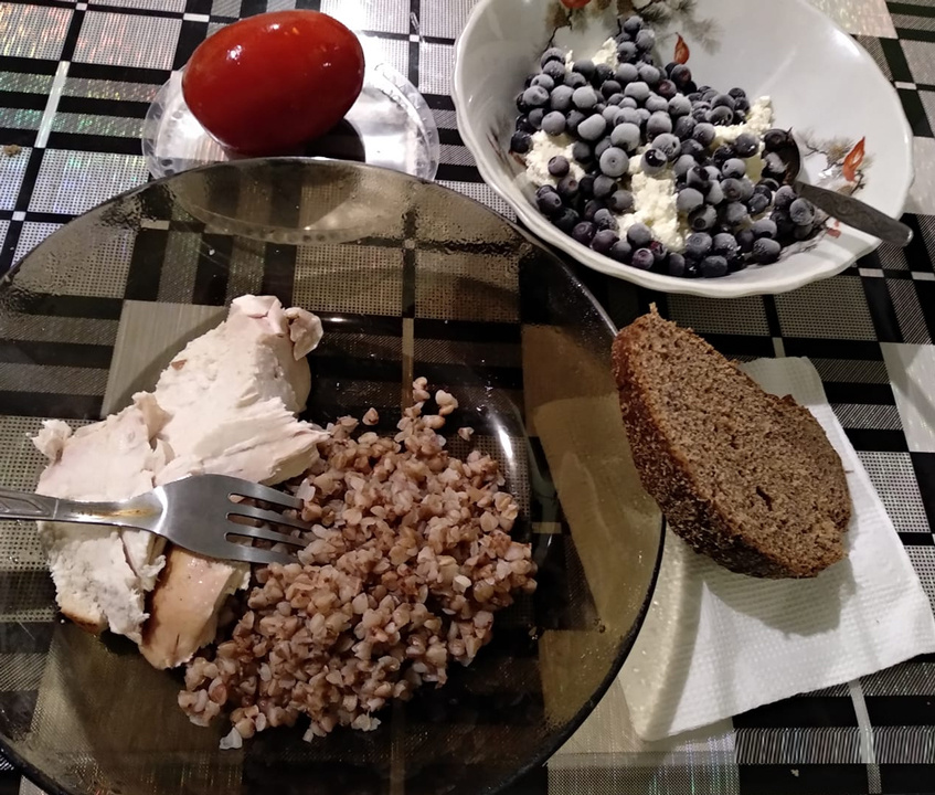 ✓ Гречка + ломтик ржаного хлеба.