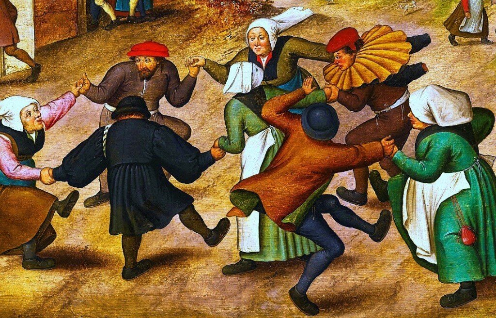 В тот момент никто не был особенно удивлен происходящим — подобные эпизоды уже случались в средневековой Европе. Одна из самых массовых вспышек произошла в 1374 году, когда танцевальной болезнью были поражены жители десятков городов и деревень на берегу Рейна. Танцевальная чума, танцевальная мания, пляска Святого Витта, танец Святого Иоанна — такие имена давали массовым психическим истериям, поражавшим Европу между XI и XVII веками. До XVI века, когда гуморальная теория стала популярной, танцевальная мания чаще всего объяснялась бесовским влиянием, а лечением было паломничество к святым местам.