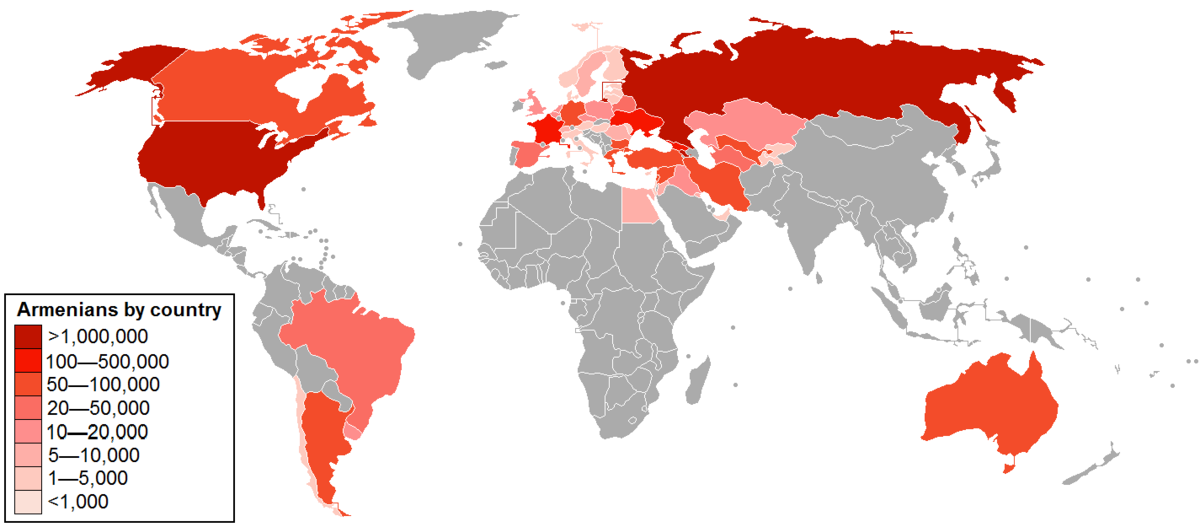 Миф о нежелании армян жить на своей исторической родине создан на основе существования большой диаспоры. По различным подсчётам в диаспоре проживает от 7 до 9 млн., в то время как в Республике Армения, Республике Арцах и в Джавахке (историко-культурный регион, часть края Самцхе-Джахети в Грузии) около 3,2 млн. армян. Такая ситуация сложилась во многом из-за осуществленного турками в 1915-1923 гг. Геноцида армян. Потомки спасшихся и составляют значительную часть армянской диаспоры в странах Европы, обеих Америк и Ближнего Востока.