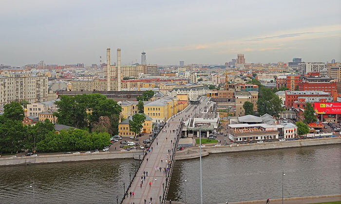 В другом направлении огромный серый жилой дом, известный как Дом на набережной, высится над потоками машин, движущимися по Большому Каменному мосту. Построенный для известных учёных и государственных деятелей в первые годы сталинского правления, он украшен мемориальными досками, посвящёнными таким жителям этого дома, как маршал Тухачевский, конструктор самолёта МиГ Артём Микоян и лидер Коминтерна Георгий Димитров.