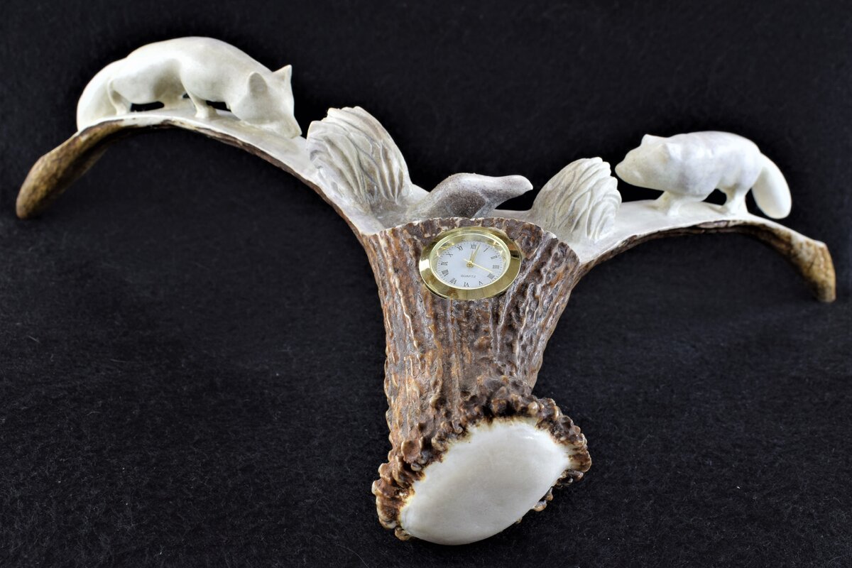 Рог оленя – небольшой, ветвистый и, в основном, внутри пористый, из него получаются небольшие работы; рог лося – более массивный, почти отсутствует пористость, из него можно делать скульптуры, а на самой лопатке рога вырезать целые сюжеты; бивень мамонта имеет одинаковую по составу структуру, из него получаются эксклюзивные, оригинальные изделия, но при неправильном хранении он может колоться и отслаиваться; скелетная кость (цевка) – трубчатая кость, подходит для изготовления плоских изделий и украшений.