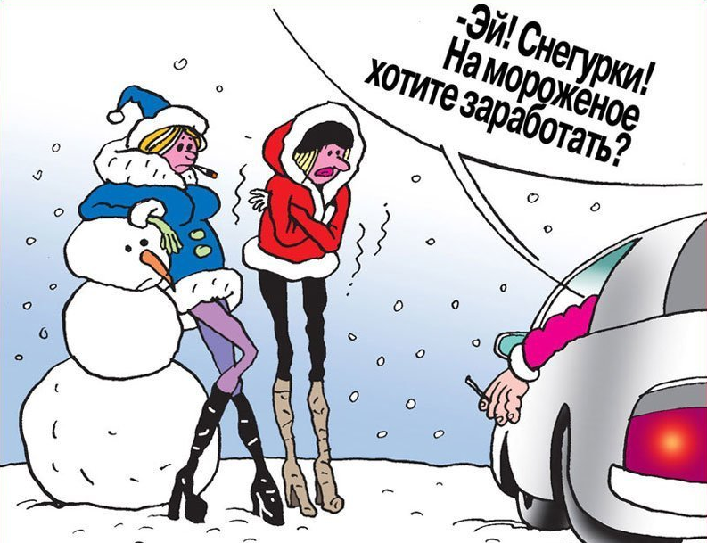 Снял мужик девушку(зимой). Повез домой. Проезжают лес, он останавливается. Говорит ей: