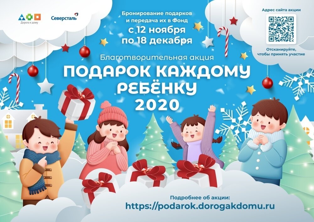 С 12 ноября по 18 декабря 2020 года каждый желающий может забронировать и купить новогодние подарки для детей. С 18 декабря сотрудники и добровольцы фонда "Дорога к дому" сформируют пакеты и передадут их в семьи.