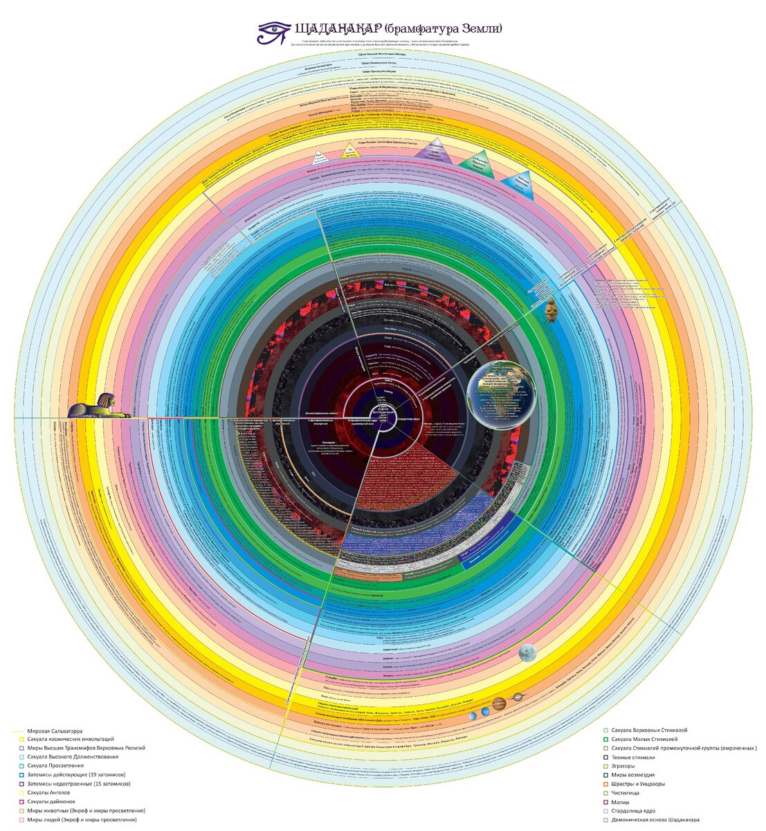 Она принимает участие в творении астральных тел всех существ Шаданакара – людей, ангелов, даймонов, животных, стихиалей, демонов и даже великих иерархий, когда последние спускаются в те слои, где астральное тело необходимо. Это тело – высший инструмент шельта. В нем сосредоточены способности духовного зрения, слуха, обоняния, глубинной памяти, способности полета, способности общения с высшими духовными сущностями, способности ощущения космических панорам и перспектив. Далее, Мать-Земля, оплодотворяемая духом Солнца, создает для воплощающейся монады тело эфирное: без него невозможна никакая жизнь в мирах трех и четырех измерений. Физическое же тело создается для нас ангельскими иерархиями – они творят самую материю.
