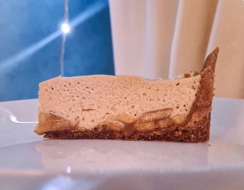 Бананы нарезать кружочками и уложить на карамель, а сверху сливочно сырный крем.