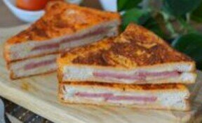 Простая, сытная и очень вкусная еда - горячие бутерброды с начинкой из колбасы и сыра. Аппетитную хрустящую румяную корочку сэндвичи приобретают благодаря обжарке в интересном яично-томатном льезоне с пряностями. Отличный завтрак или перекус из вполне доступных продуктов!