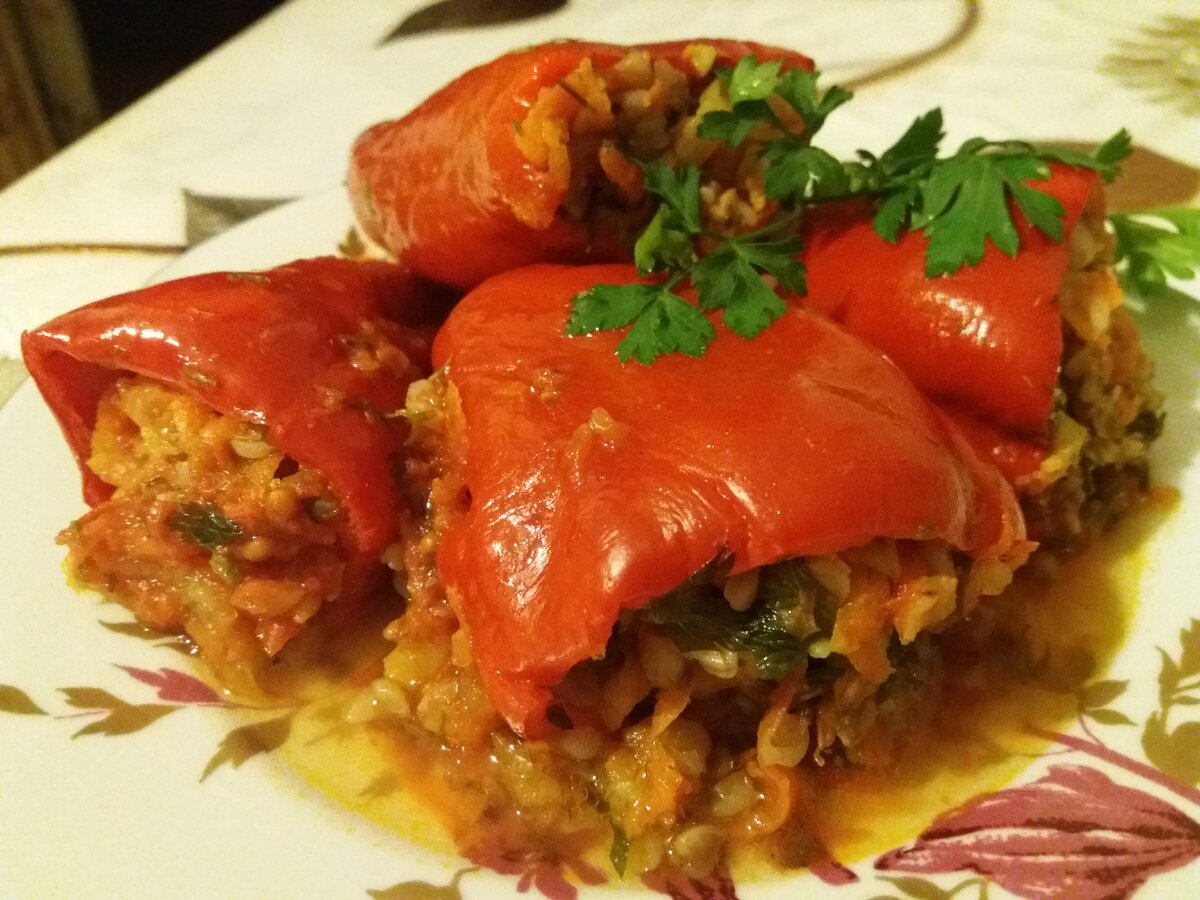 Это блюдо я впервые приготовила этим летом и мне оно очень понравилось. В основном перцы фаршируют рисом либо фаршем. Это уже приелось и я решила попробовать что-нибудь новенькое. Диетические перцы с гречкой получаются вкусные и сытные.