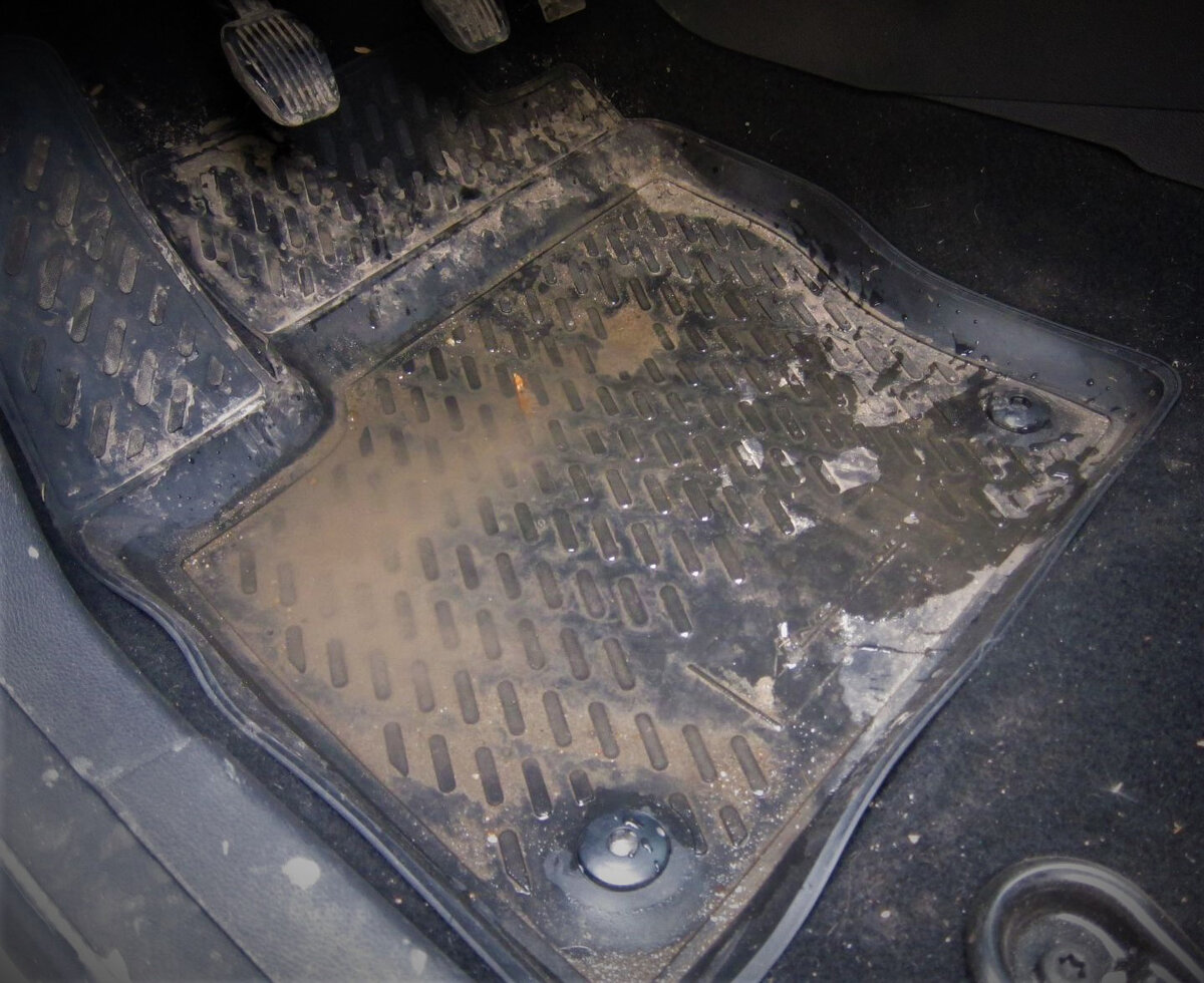 Всё это добро неизбежно наполняет коврики в автомобиле. Не просто так, большинство автовладельцев у нас предпочитает резиновые коврики с высокими бортами. В противном случае, вода и грязь будет впитывалась в ковролин и провоцировала там новую зловонную жизнь.