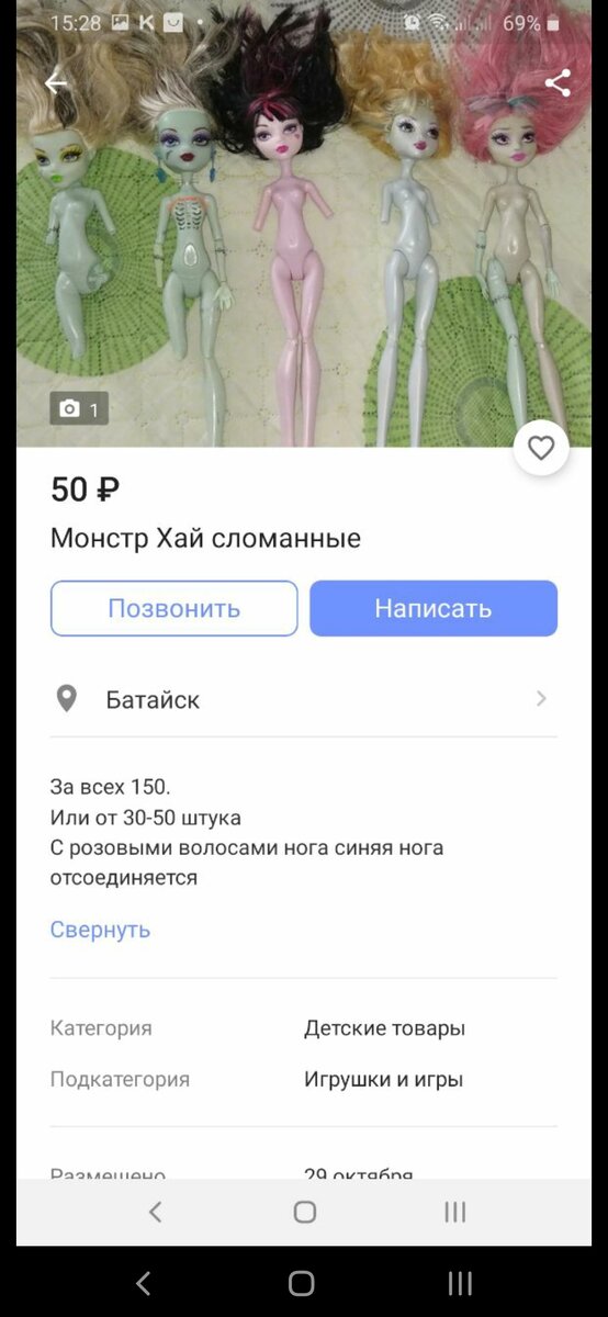 В очередной раз просматривая Юлу я наткнулась на объявление с поломанными куклами, всего за 150р за лот, что очень удивительно, ведь в кукольных группах одна голова может стоить 150, а предплечье или кисть +-80р