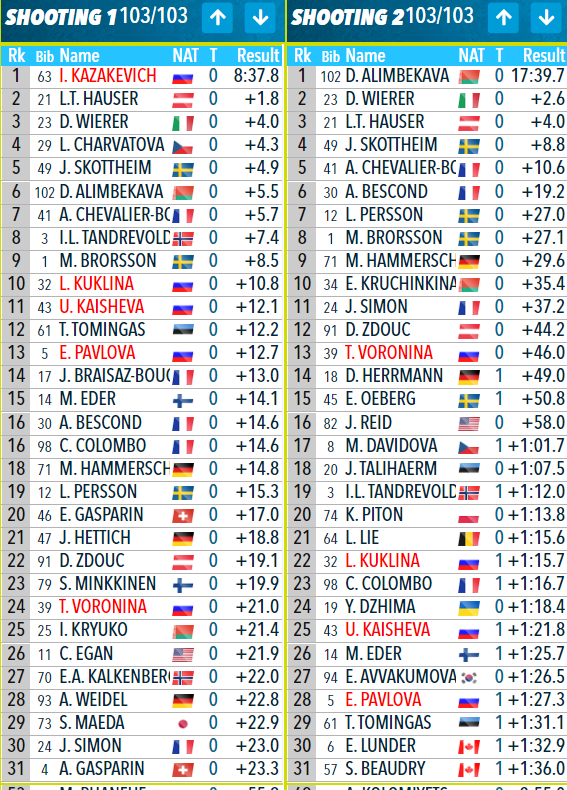 15. Ульяна Кайшева (Россия) +2:38.0 (2)