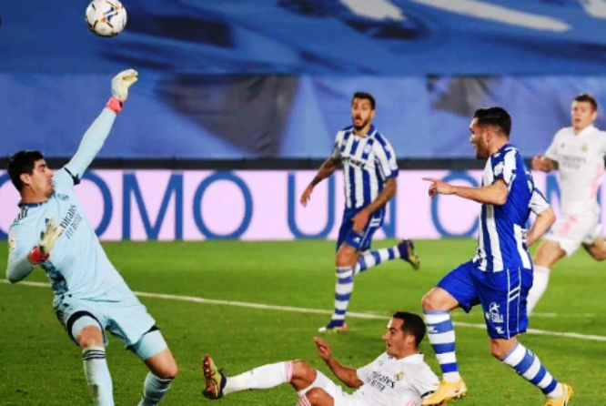 Нападающий «Алавеса» Лукас Перес реализовал пенальти, открыв счет матча уже на 5-й минуте. Судья назначил 11-метровый после того, как защитник «Реала» Фернандес Начо рукой в своей