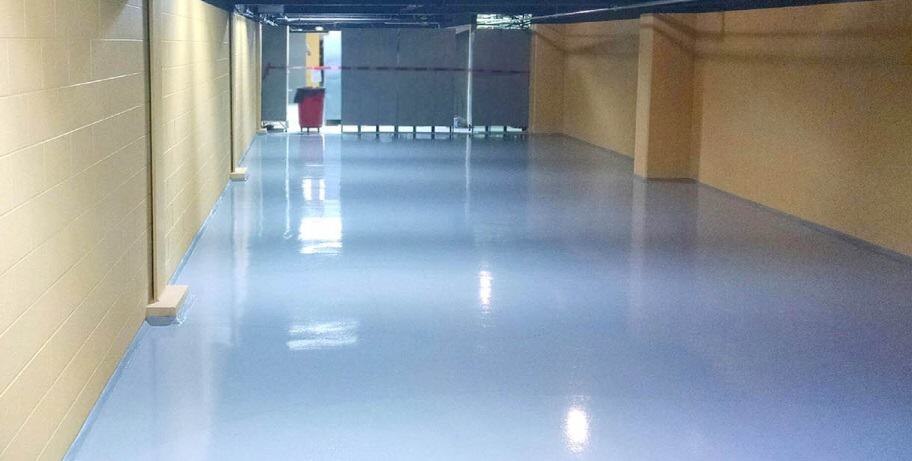 Поверхность бетонного основания шлифуется, как и при устройстве эпоксидных наливных полов. При шлифовке убирается цементное молочко, поверхность немного выравнивается, благодаря чему снижается расход материала.