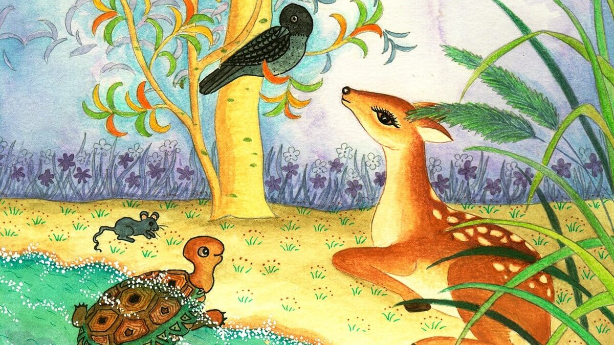 Однажды ползла черепаха вдоль берега и повстречала оленя. Олень посмотрел на нее презрительно и говорит: "Эй ты, коротконогая, давай побежим наперегонки!" - "Что ты, - засмеялась черепаха, - разве тебе за мной угнаться!" Но олень был уверен в своей победе. "Пусть каждый из нас, - сказал он, - заранее проложит себе путь, и мы побежим". - "Будь по-твоему!"