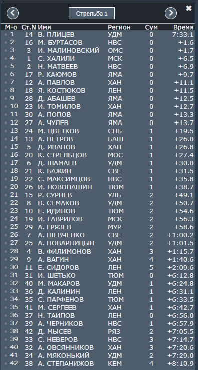 1. Максим Цветков (Санкт-Петербург/Вологодская область) – 41.11,0 (1,1,0,0)