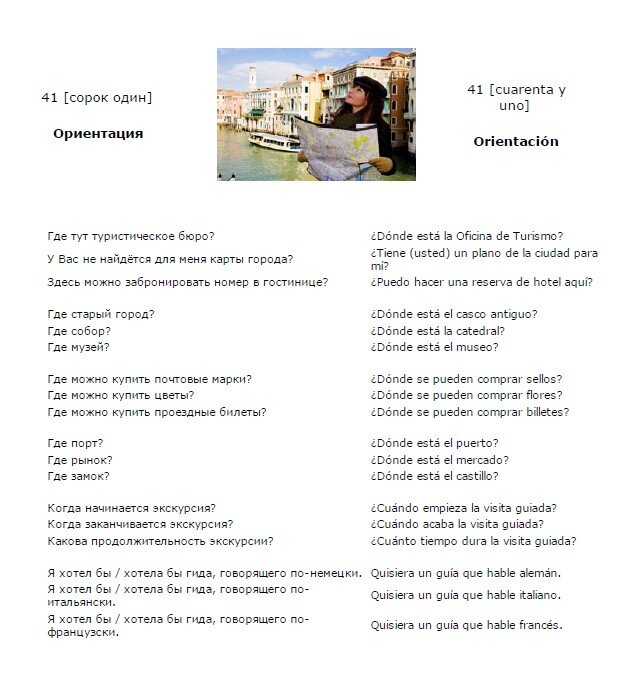 Я хотел бы / хотела бы гида, говорящего по-итальянски. - Quisiera un guía que hable italiano.