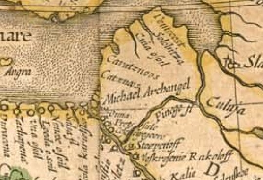 Рассматривая в интернете различные старинные карты я неоднократно видел, что город Архангельск на них, до начала 18 века, именуется как S.Michael Archangel. Приведу несколько примеров: