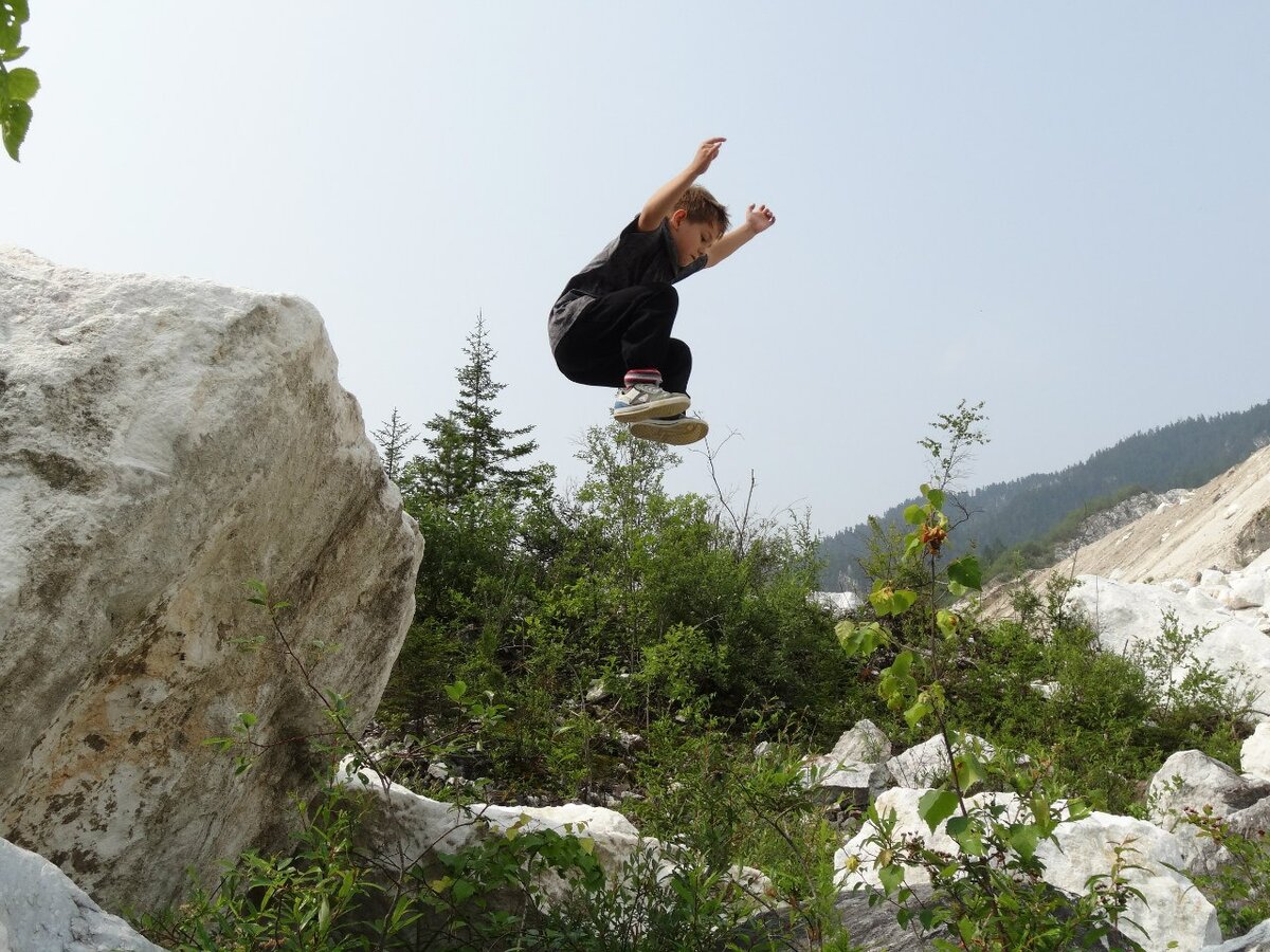 Папа привез меня туда и уехал на два часа. Я как всегда сначала размялся, потому бегал по паркур городку, прыгал на дорожке, прыгал в яму с дорожки, с батута. И вот наступил тот момент, когда тренер сказал мне попробовать