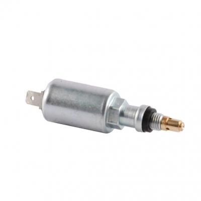 Часто, это проблема возникает на карбюраторных моторах, по причине электроклапана. Он отвечает за перекрывание топлива. Вот он на фото:
