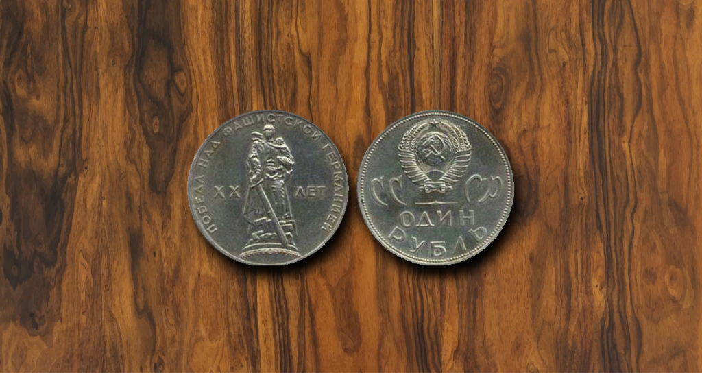 Первой памятной монетой стал рубль 1965 года выпуска «20 лет Победы». Стоит отметить, что общий тираж достиг 60 миллионов штук, однако среди многочисленных экземпляров можно найти очень редкие монеты.