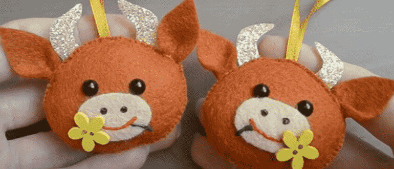 Такие маленькие, милые и мягкие бычки могут стать украшением для ёлки или просто украсить полку в доме. Процесс изготовления подарит вам море удовольствия. Вперёд творить!