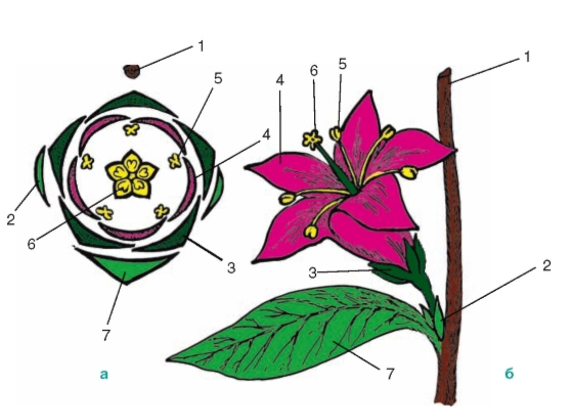 Схема строения цветка должна отражать его симметрию, число элементов и их расположение, наличие срастания. Общую симметрию цветка определяют по венчику.