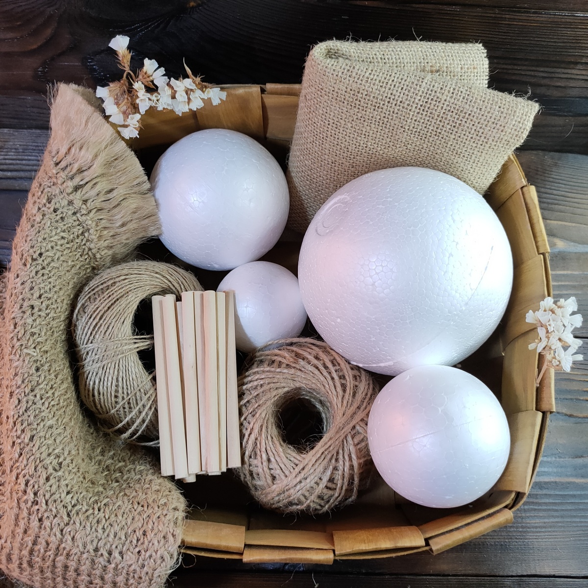 - Три пенопластовых шара ( у меня 12, 8 и 6 см в диаметре)
