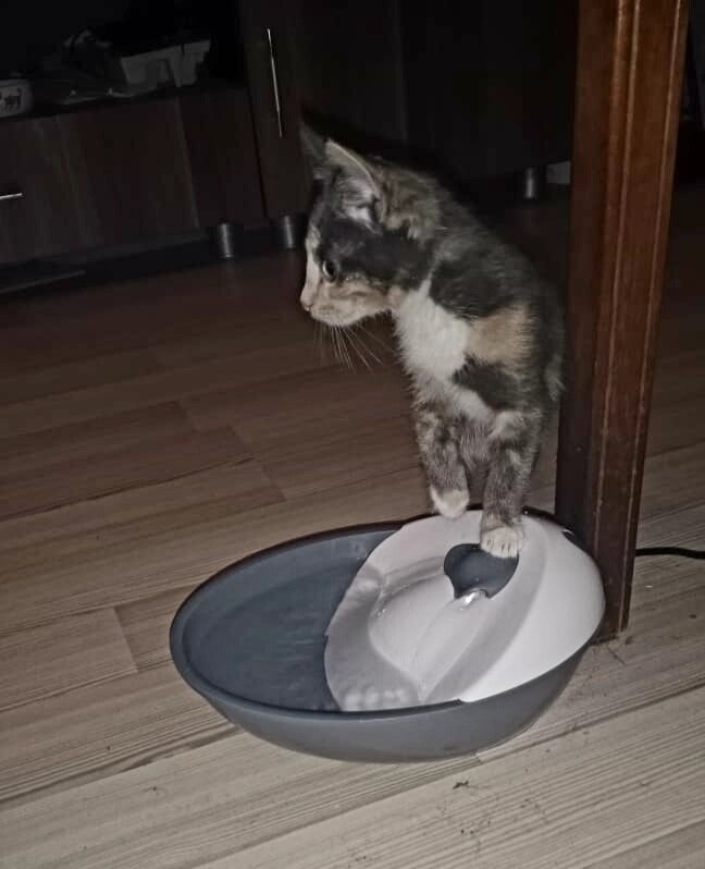 За сегодня освоили лоток. Правда я пока в комнате поставил, так как она из комнаты не очень пока выбегает, видать еще не освоила простанство в комнате и наполнитель иной, потому пришлось держать на контроле это дело. Но все хорошо - освоили питье из фонтана.